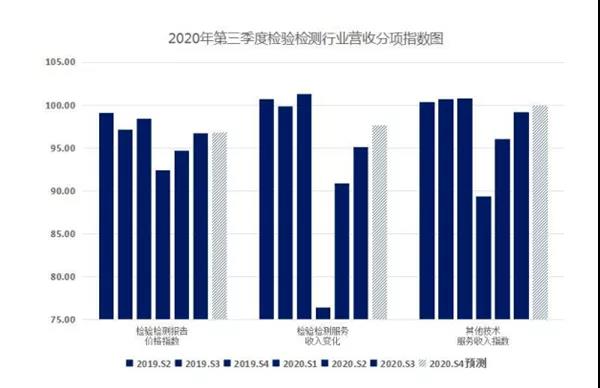作为生产性服务业,检验检测行业对宏观经济形势的变化反应十分灵敏。在市场监管总局认可检测司最新发布的测评中,2020年第三季度我国检验检测行业景气指数值为99.33,环比上升5.00点,比第二季度预测值98.32略高,对业绩增长的信心普遍恢复,呈现较为积极向上的心态。